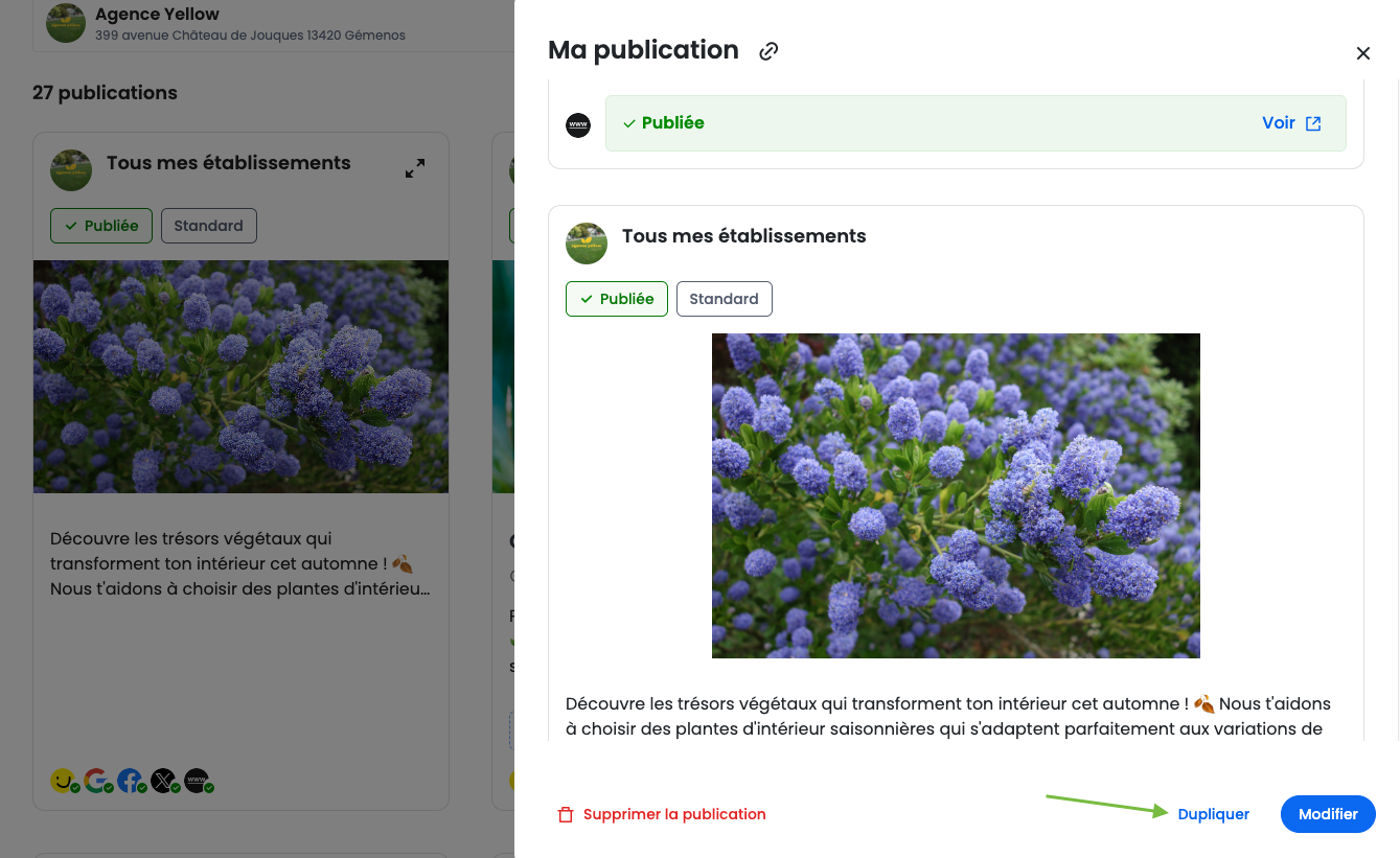 Dupliquer une publication est possible depuis votre ordinateur ou depuis l'app mobile de Solocal Manager.