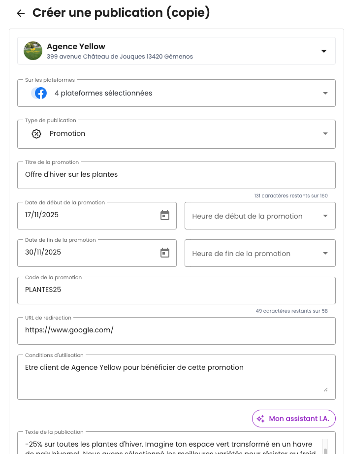 Exemple de publication de type promotion qui a été dupliquée :