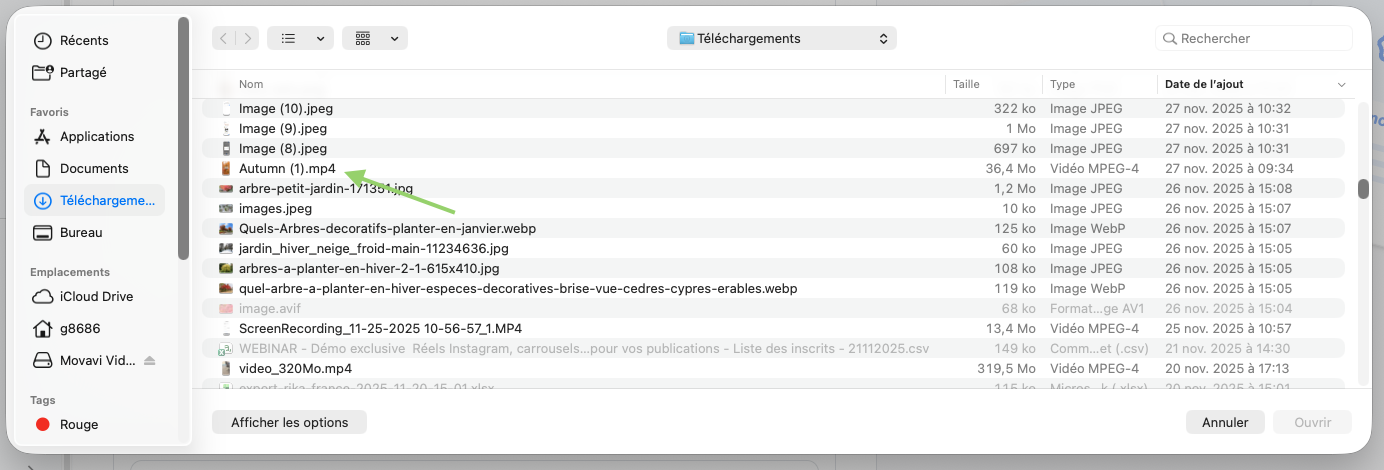 - Formats acceptés : .Mp4 (fortement recommandé) .Mov / .Avi