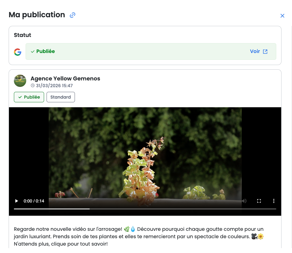 4. Votre vidéo est ajoutée à votre publication: