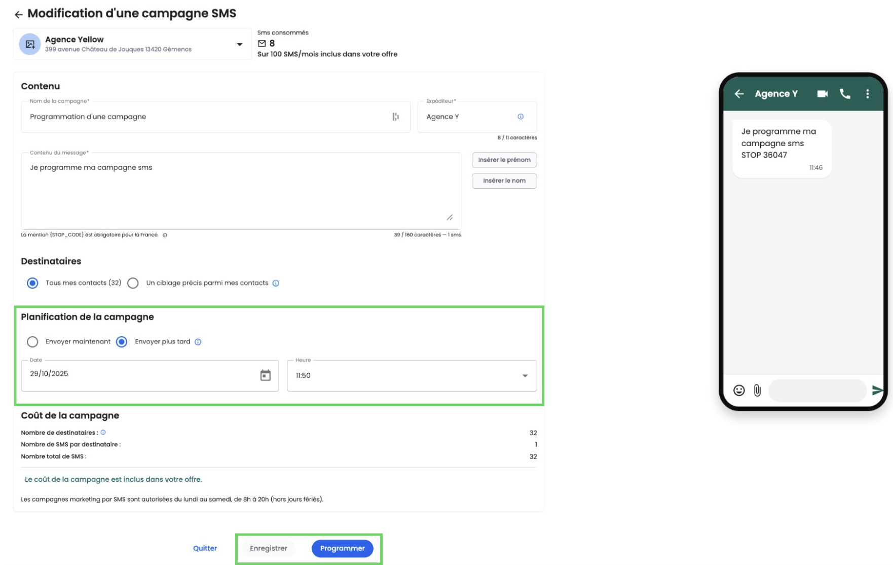 🧭 Comment programmer une campagne sms ?