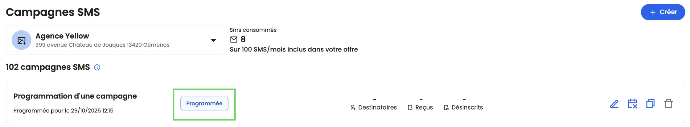 Les crédits sont décomptés sur le mois d’envoi de la campagne (et non le mois de programmation).