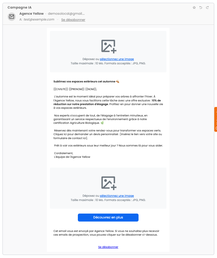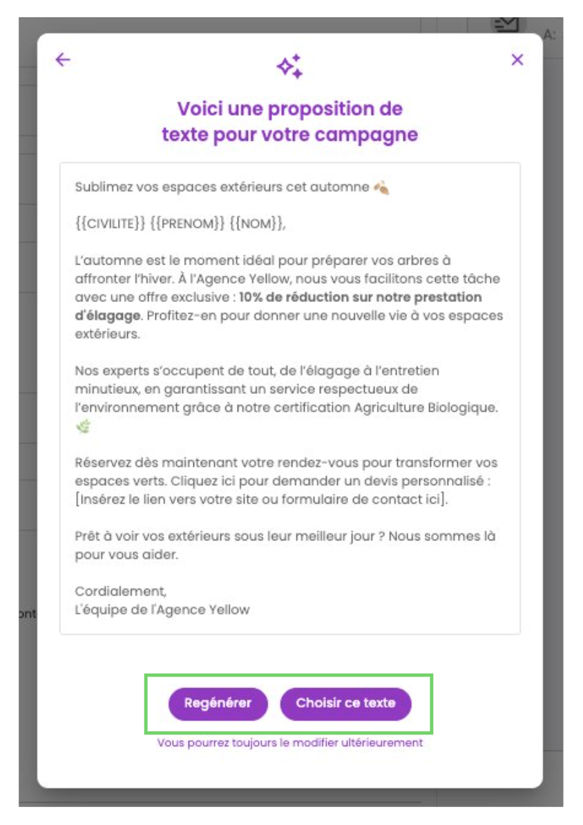 Oui ! Le texte proposé par l’IA est une base que vous pouvez adapter ensuite depuis le template email.