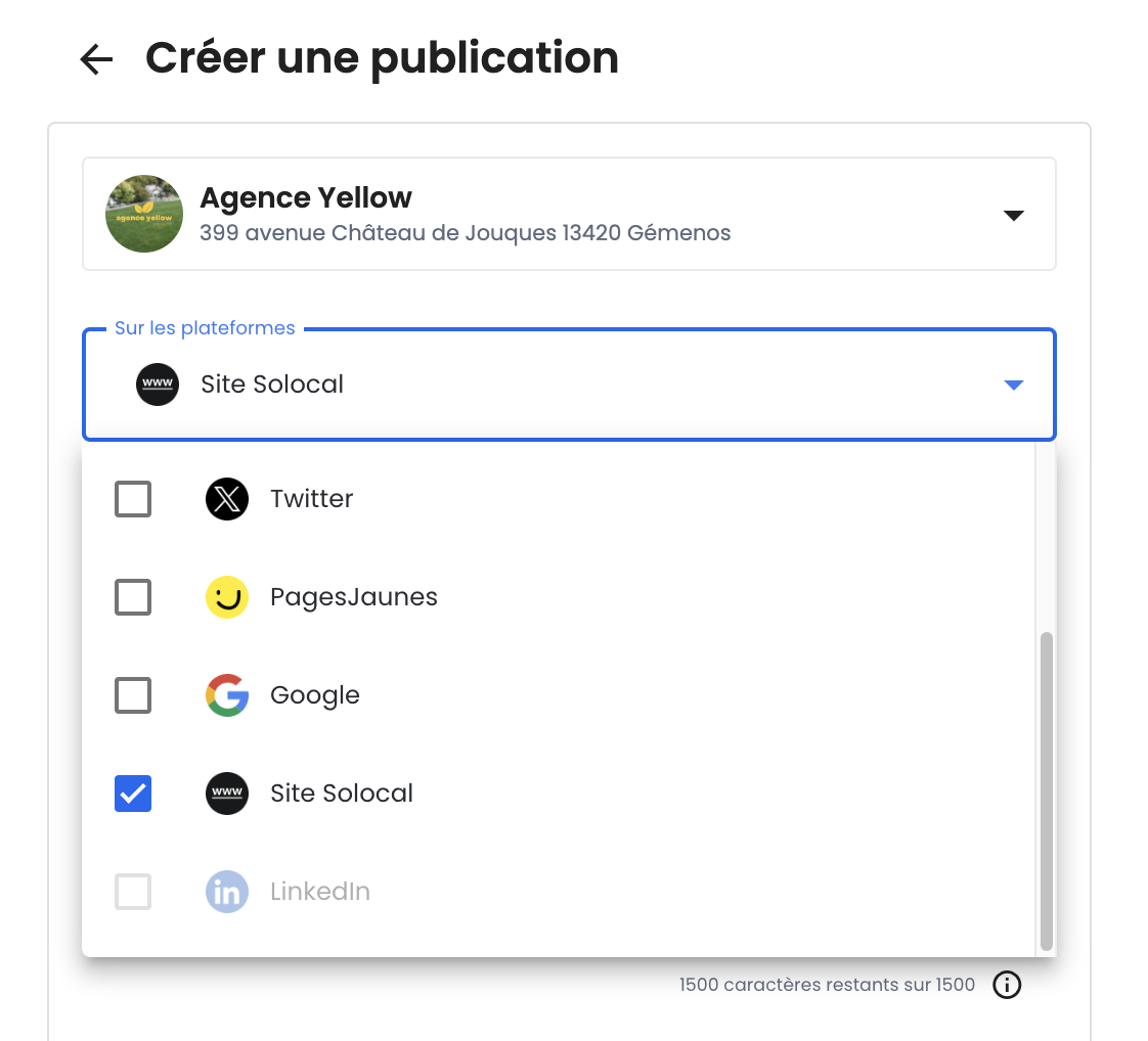 ➡️ Choisissez ici Site Solocal et sélectionner le type de publication que vous souhaitez créer.