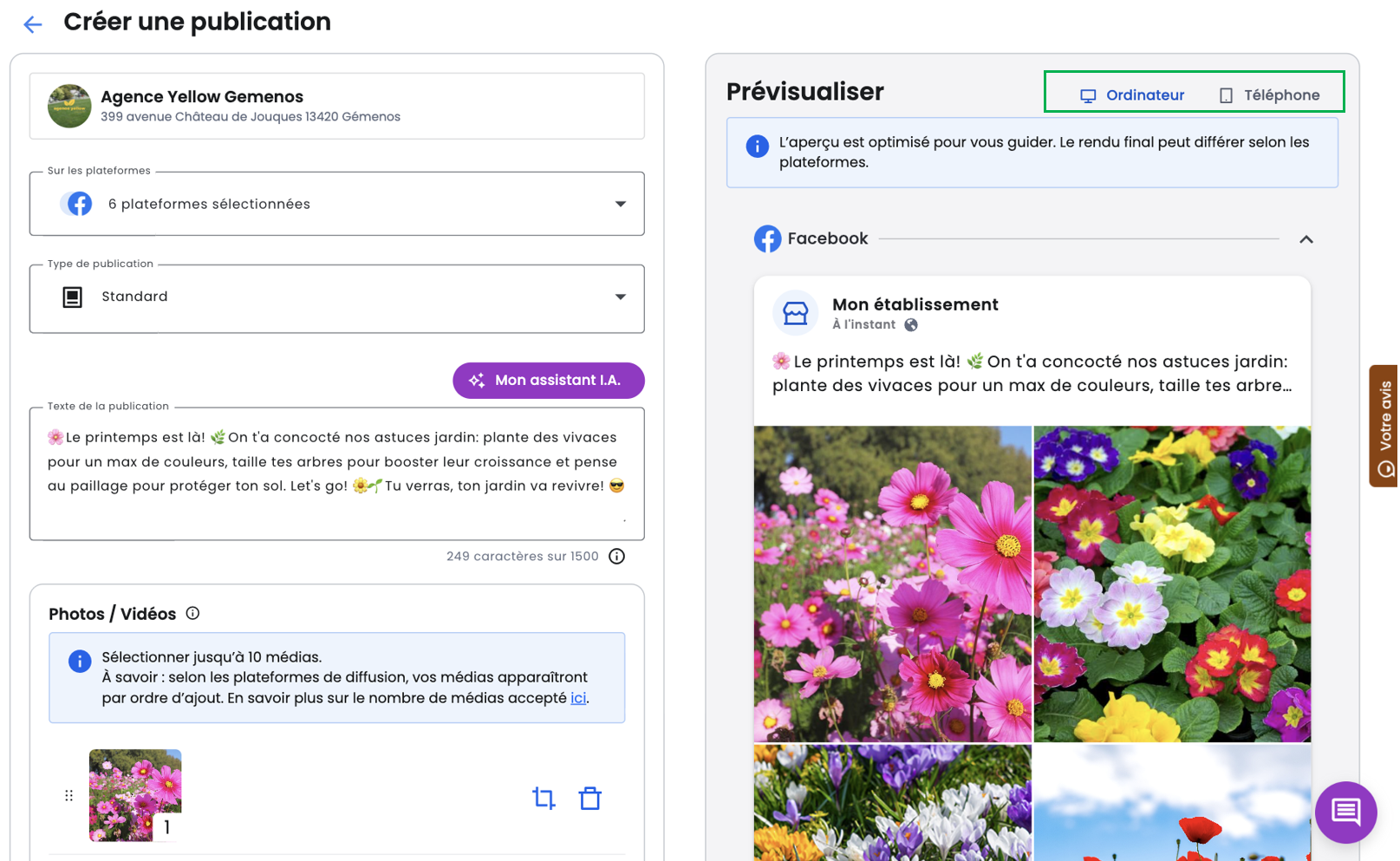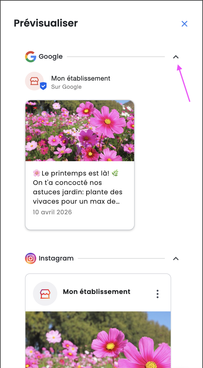 Prévisualiser vos posts avant de publier sur vos différentes plateformes de diffusion (Google, pagesjaunes, Instagram, Facebook..)