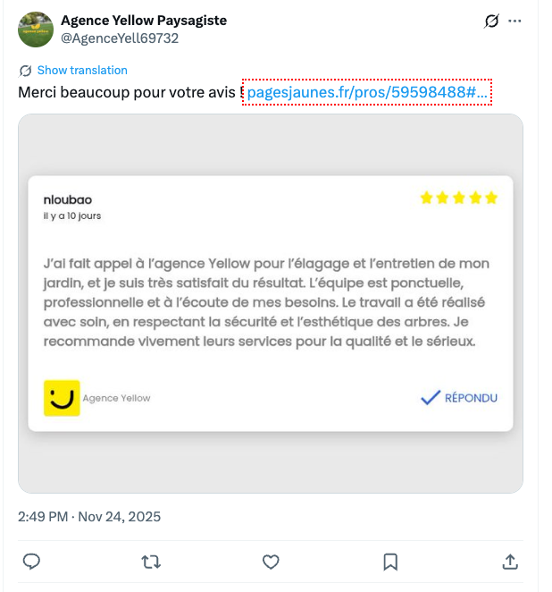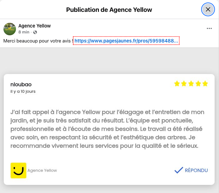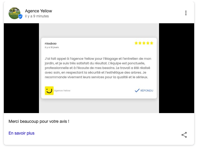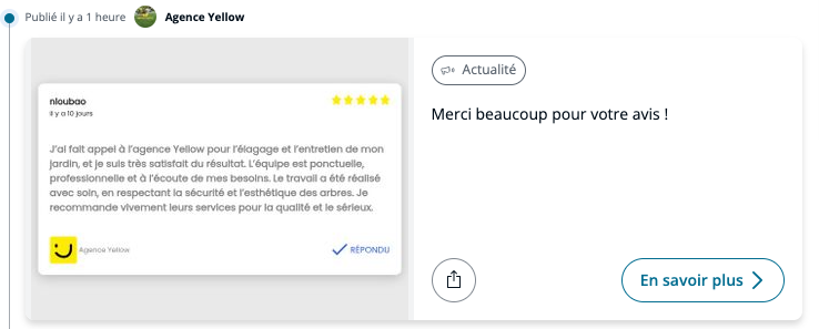 Voici comment apparaît votre partage d'avis sur Pages Jaunes.