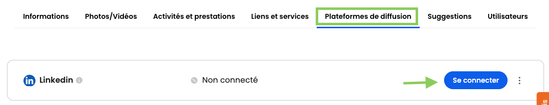 Vous pouvez via Solocal Manager diffuser des publications sur LinkedIn. Pour cela vous devez disposez d'une page afin de vous connecter.