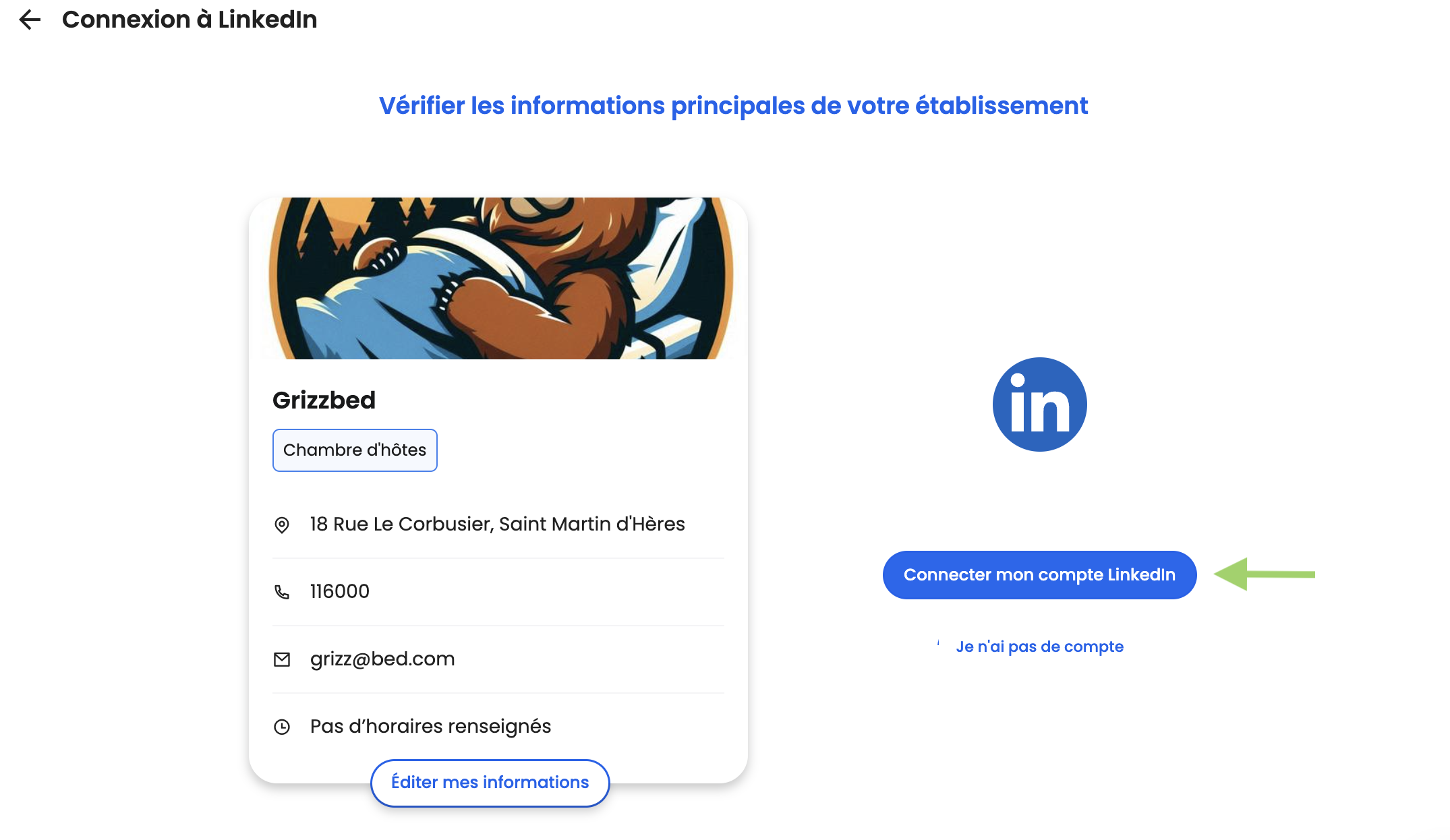 • Si vous avez une seule page sur LinkedIn et plusieurs établissements, vous ne pourrez connecter qu'un seul établissement.