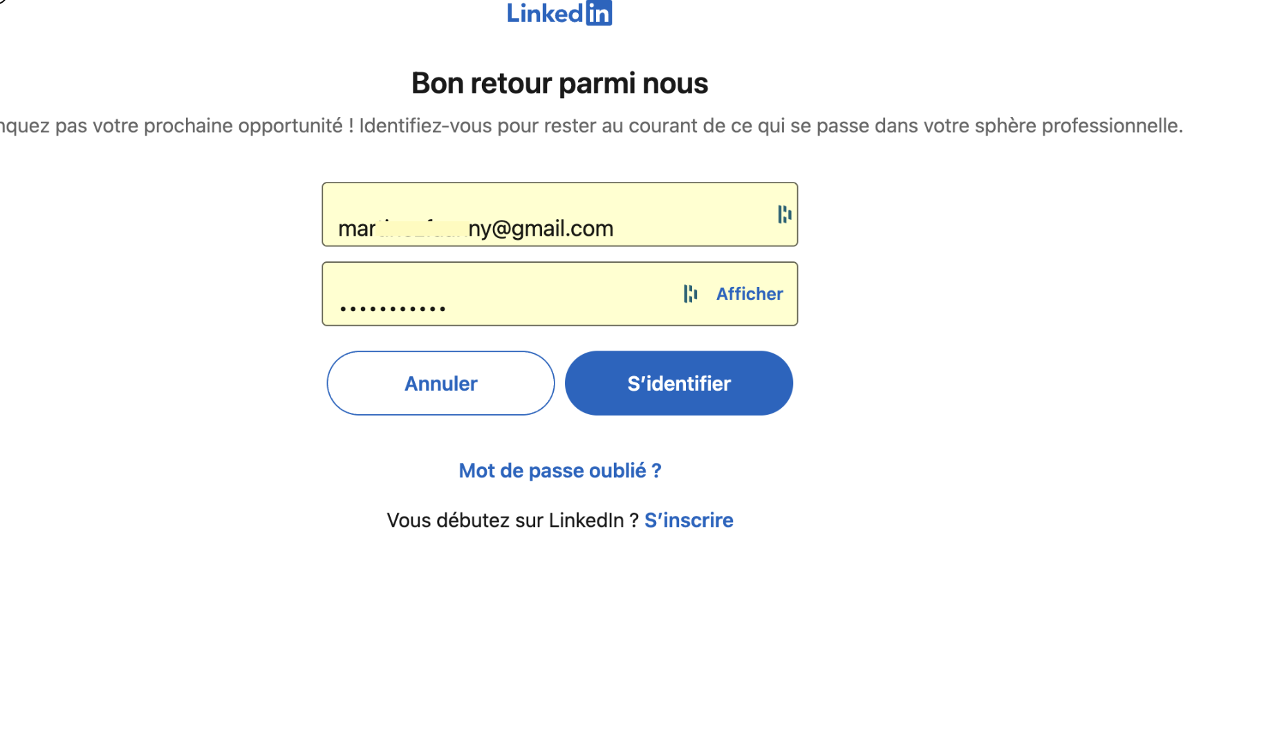 4. La page de connexion LinkedIn s'ouvre. Connectez-vous avec vos identifiants LinkedIn. Vérifiez que ce compte administre bien la page de votre établissement.