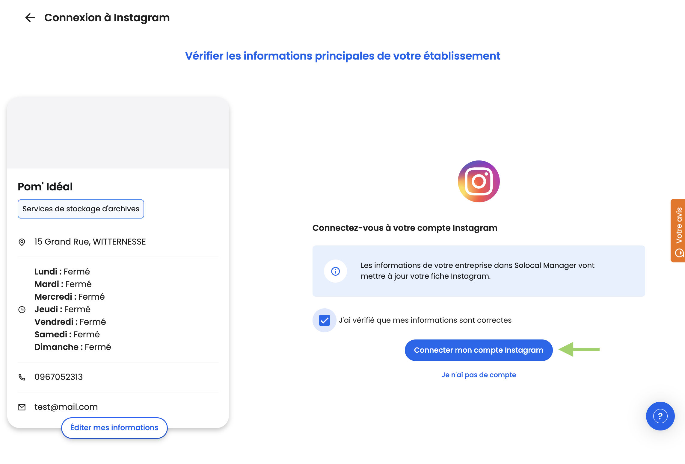 1. Le pas-à-pas : connecter Instagram à Solocal Manager